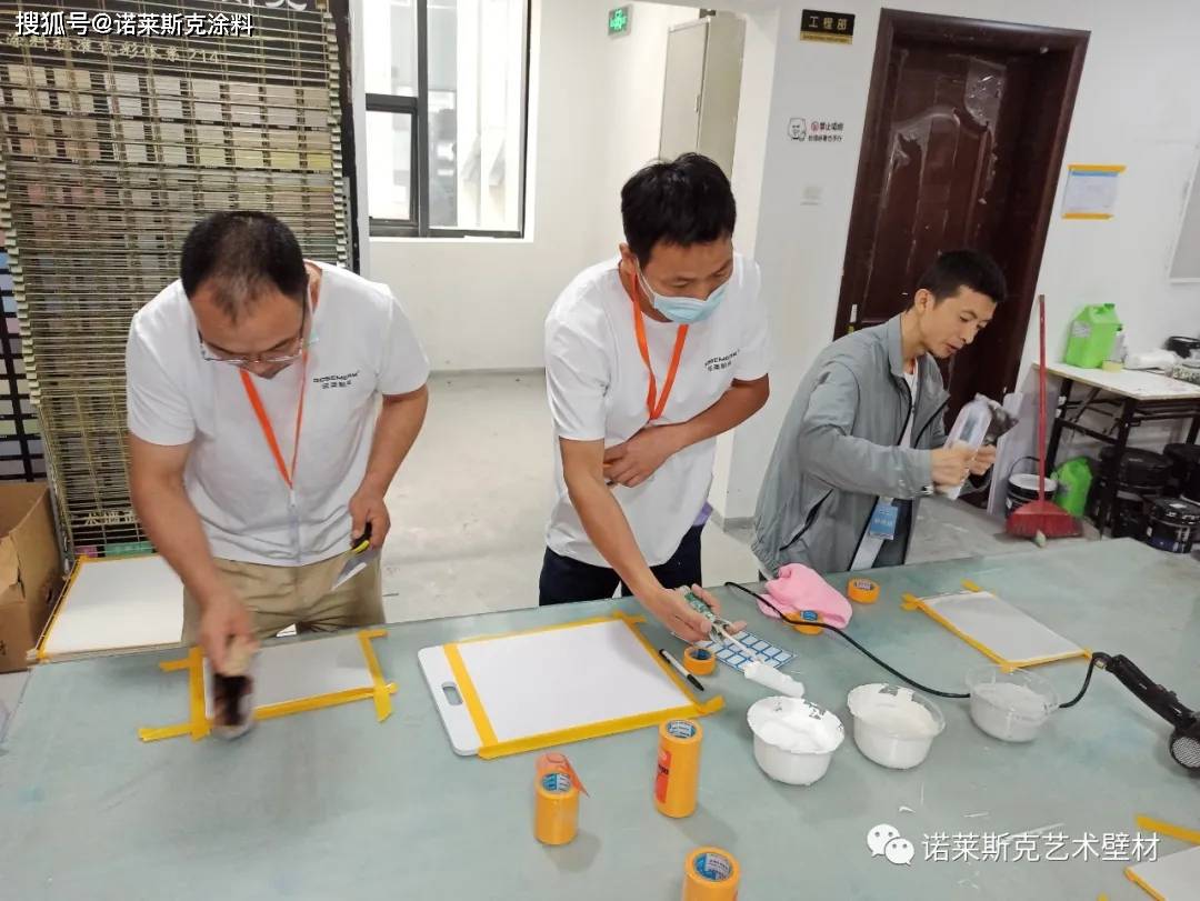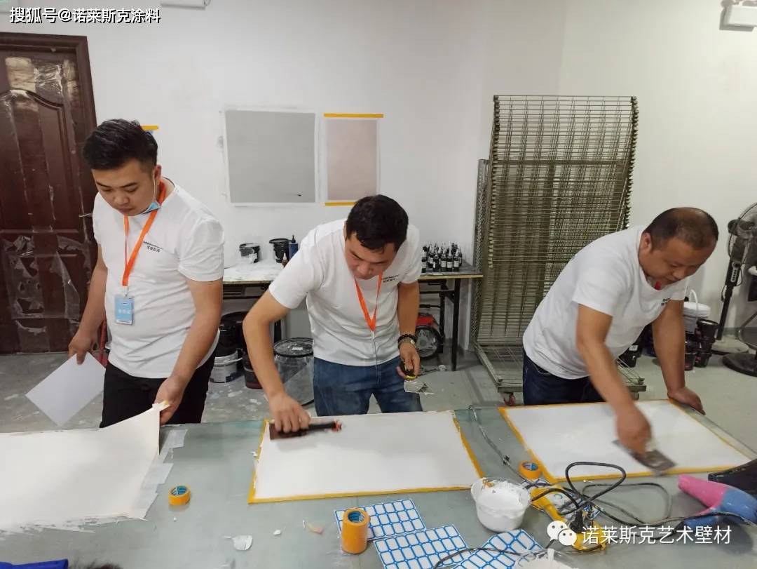 本次艺术涂料培训,重点对墙艺师的工艺进行培训指导,主要采取现场教学+实操的方式,由培训老师现场将工艺的施工步骤、技巧、注意事项通过演练跟大家进行详细的讲解。