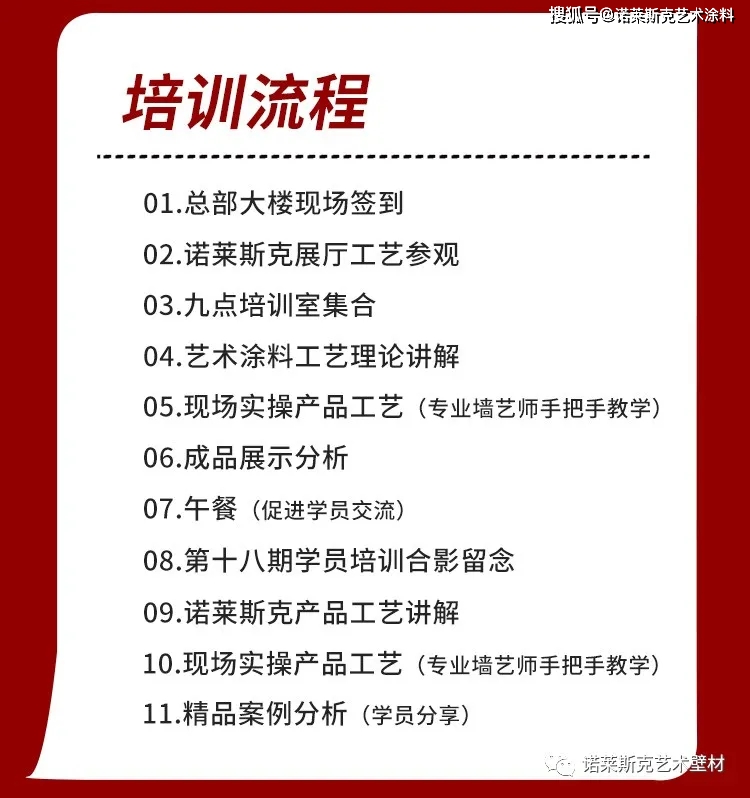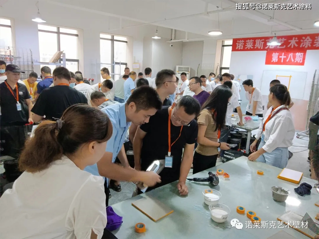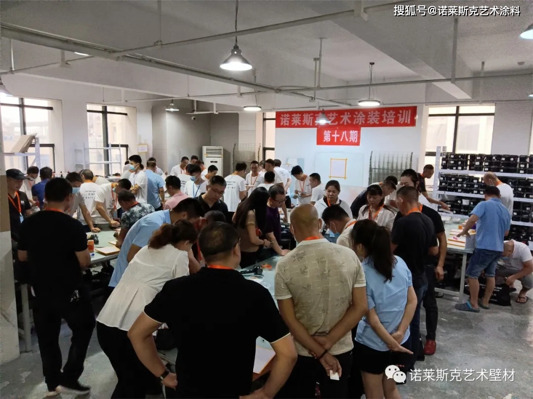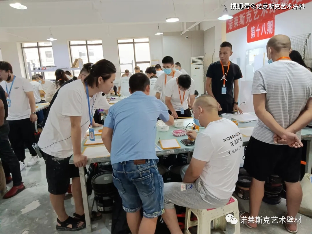 本次艺术涂料培训,重点对墙艺师的工艺进行强化培训,主要采取现场教学+现场实操的方式,由诺莱斯克三大名师现场将工艺的施工步骤、技巧、注意事项通过演练跟大家进行详细的讲解。