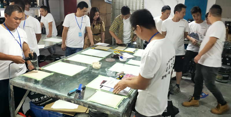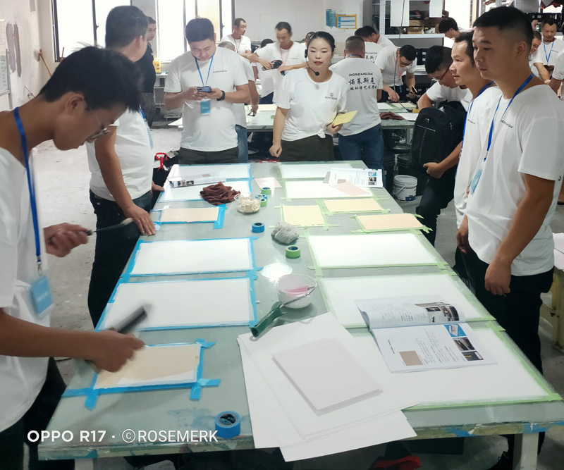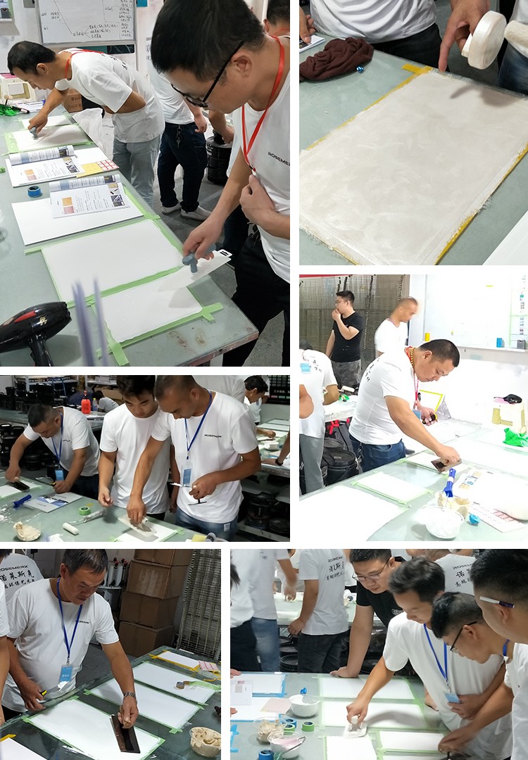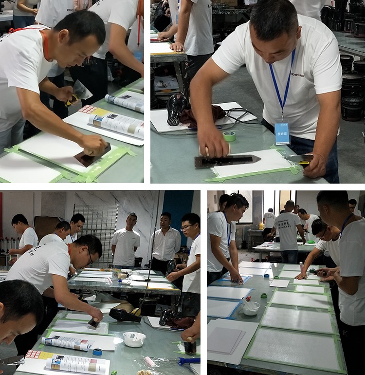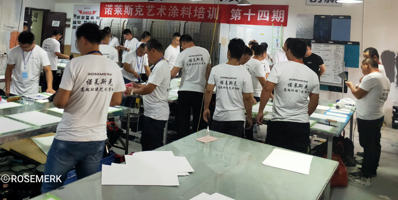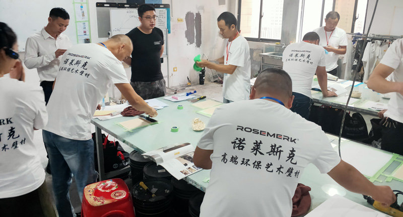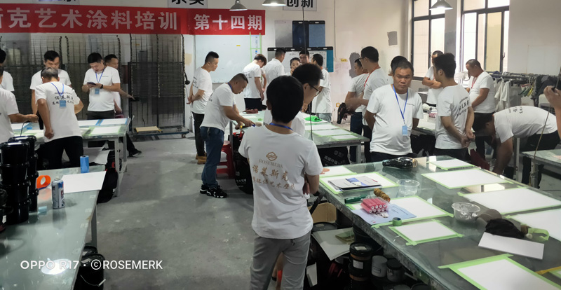 参加本次培训的学员都珍惜机会,认真学习,有的还提起笔记录,遇到问题及时提问,我们培训师以多年丰富艺术涂料经验,施工技巧,工具运用,色彩体系等,毫无保留的教给每位学员。