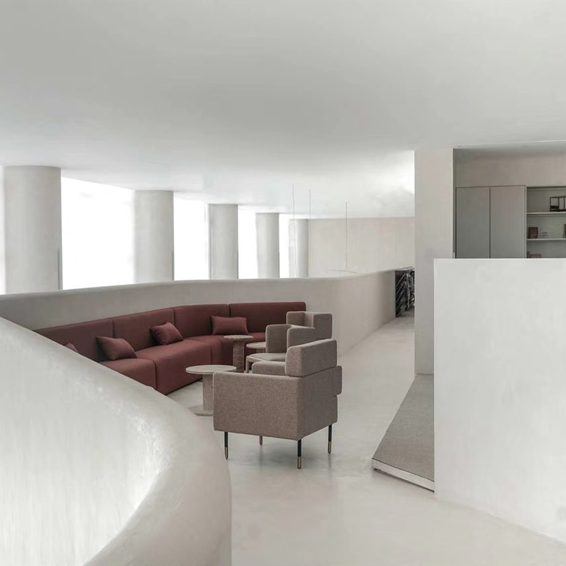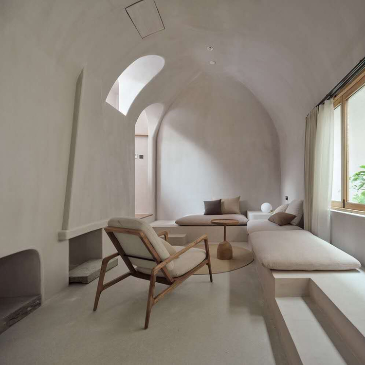 墙地顶一体金刚无机微水泥,就是完全不需要踢脚线、石膏线吊顶,让墙面、地面、顶面装饰一气呵成。我们可以按照设计师的要求指定调色。极简到深处,就有了我们苦苦搜寻的赤贫、侘寂的装修感觉。