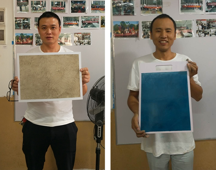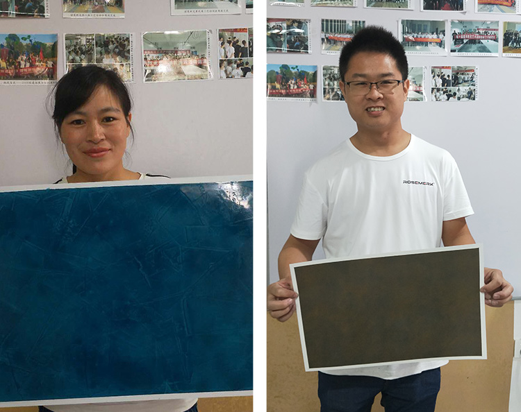 在培训实操环节,学员们面对新产品、新工艺跃跃欲试。在艺术漆导师的指导下,进行小面积的上样施工。从刷漆到烘干,从动作生硬到轻车熟路,大家看着自己完成的作品,纷纷表示对产品的效果推广和发展前景信心满满。