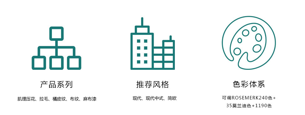 “时尚”潮流的多功能型产品,粘接力强、独特的饰面可以实现多个工艺效果,通用性很强,性价比高,塑形性好,防水耐用,具备一般涂料不能媲美的特性。适合个性化高档室内墙面装饰。